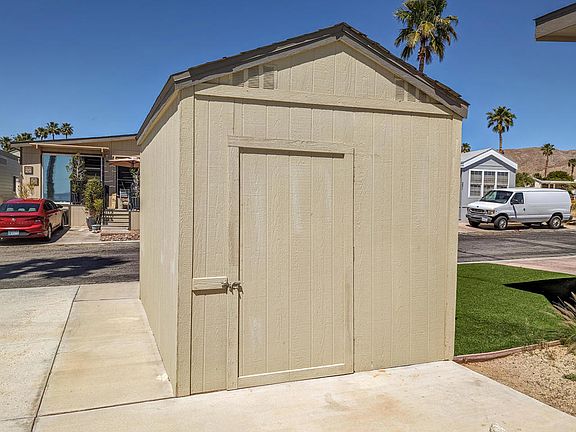 Spectacular and prime location close to the Clubhouse with this 2006 ~400 sq. ft. Laurel Crest Park Model home with sweeping and unobstructed views of Mt. San Jacinto. Come find your vacation getaway to the sun and desert with this immaculate, efficient, and well-maintained 1 bedroom, 1 bath, travertine flooring throughout, modern finishes, and volume ceilings. Sunbathe on your deck surrounded by glass railing for viewing pleasure to take in all the magnificent beauty and desert scenery, additionally, a finished shed with possible washer/dryer connection and a new HVAC system. This jewel is in the premiere Caliente Springs 55+ Resort and offers top notch amenities to soothe your every desire including mineral hot spring fed pool and spas, fitness center, 9-hole golf course, 8-pickleball courts, tennis courts, full laundry facilities, library, chapel services all in a fun and active community. Bring offers, make new friends, and call this home. Lot is not owned; space rent is $811 (subject to change). Easy lender financing (OAC).