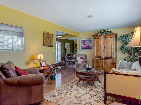 Amazing Value for this Tamarisk Golf Course home that features Amazing Views of the Golf Course and Mountains. The backyard is South Facing and offers a Large Private Pool on a Large Fenced Lot, ALL with No HOA Fees! This private, single level ranch style home has been upgraded with newer appliances, energy-efficient windows and sliding doors, 6 foot vinyl perimeter fencing (sides only), pool heater, custom paint and attractive plantation shutters. The home offers a separate Family Room, enclosed Sun Room, a 3-car Circular Driveway, Custom Tile and Wood/Laminate Flooring through out. This is Resort Style Living at it's best!