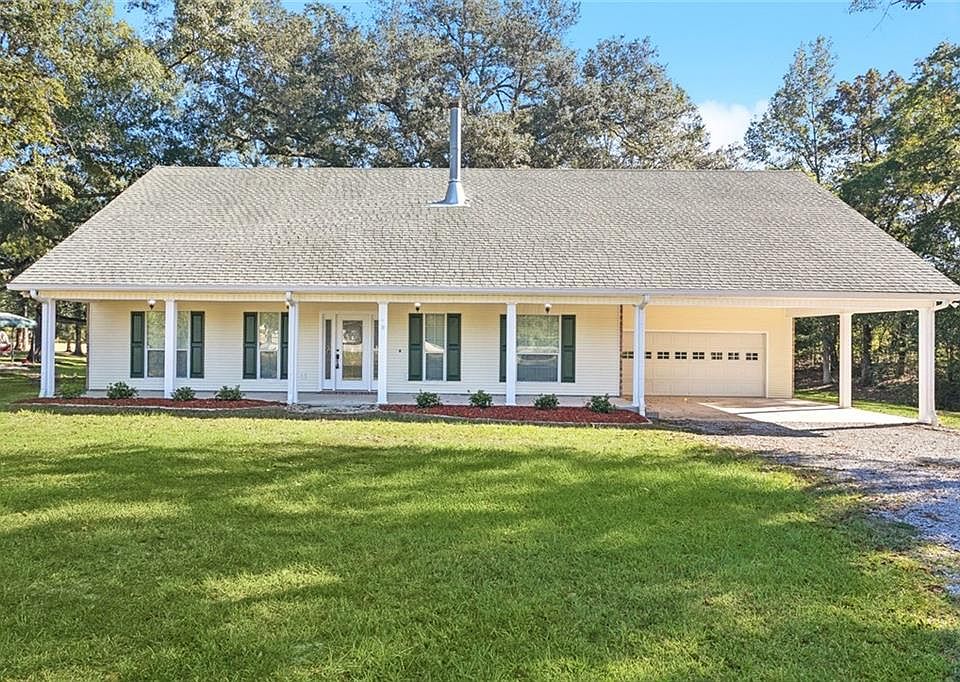 Welcome to this beautifully maintained 3-bedroom, 2-bath home nestled on a spacious 0.77-acre lot. Inside, you’ll find wood-look ceramic tile flooring throughout, adding durability and style to every room. The kitchen showcases granite countertops, custom cabinetry, and a functional layout perfect for everyday living. The primary suite is privately situated apart from the secondary bedrooms and features dual tray ceilings, offering a peaceful retreat for relaxation. Enjoy outdoor living with a covered front porch and a backyard patio—perfect for morning coffee or weekend gatherings. The property also includes a two-car garage with drive-through vehicle access to the backyard, providing both convenience and versatility. Experience the charm and space of country living while staying just minutes from all the conveniences of Pearl River and the Northshore!