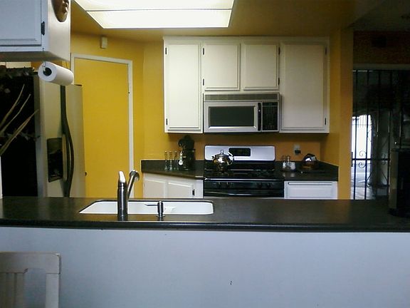 Paramount Townhouse with Loft. Master w/ walk-in closet, 2 bath, 2 sink counter in Master w/shower/tub combo. Garage with direct access and washer & dryer hook up. New acrylic counters w/molded sink, new laminate floor throughout, new kitchen appliances, forced arir heating and air conditioning. Custom blinds throughout, custom skylight in living room, private patio/small lawn, common ft landscaped gardens, greenbelt and spa. 105, 710, 405, and 91 fwy close. No FHA financing.