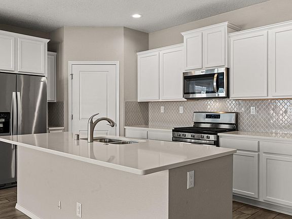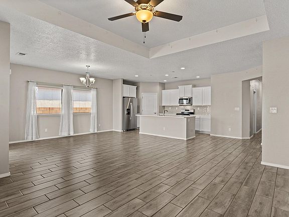 Welcome to this home, built in 2020 by Abrazo homes within Lomas Encantadas. This open floor plan concept of living, dining & kitchen offers ideal space for entertaining. Oversized island in the kitchen, add stools for additional seating. Stainless appliances and pantry. Quartz countertops and ample cabinets. Split floorplan, with Primary bedroom and secondary bedrooms separated. 3 car garage! Backyard is an open canvas for your gardens. Neighborhood offers multiple parks/recreation areas, nature trails, and a dog park, with close proximity to 528 & I-25. restaurants, shopping and Breweries. Move in ready means you can transition with ease and enjoy the start of Fall and the Holidays