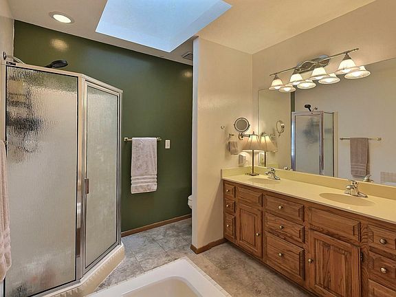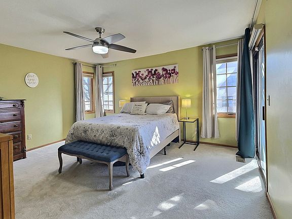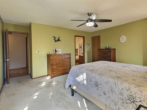 Charming 3-bed 4-bath home in Rockhurst. Inside the grand foyer, step down into the spacious main floor living room with vaulted ceiling and cathedral window, wood burning fireplace, and lovely wet bar behind double doors. Includes a crow's nest that overlooks the living room from the loft area above. Formal dining room. Awesome kitchen with beautiful oak cabinets and quartz countertops, includes slider door to deck, eat-in space, and an island with electrical outlets and storage. Box window sits above the roomy double sink. Separate coffee bar area. Large main floor Primary bedroom with walk-in closet, en-suite bathroom with luxurious jetted tub, corner shower, double sink vanity and sky light. Just around the corner is the main floor laundry room with sink, lots of storage and includes a convenient pass-thru cabinet to the primary bathroom. A half bath sits across from the staircase. Upstairs you'll find 2 Bedrooms with a full bathroom (tub/shower) in between them. A whole house attic fan. The quaint and cozy loft area has a roomy storage closet and sky light. Downstairs is another spacious Family room area with two egress windows that provide natural light, a half bath, three storage areas and an amazing Fitness room. 2-car garage. The Double tier deck off the back overlooks mature trees and offers a great space for entertaining. Conveniently located near great dining and shopping at Bradley Fair and Waterfront. Mark Arts and within walking distance to Eastview Park that includes a playground, tennis courts, baseball field, soccer field and extensive walking paths. Don't miss out on making this your home to really enjoy life!