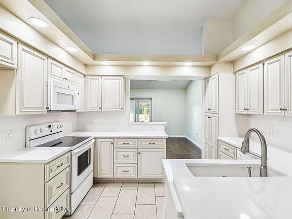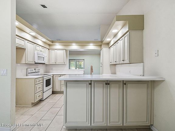 Welcome to this beautifully maintained and thoughtfully upgraded CUSTOM-BUILT 3-bedroom, 2-bath home, nestled in a serene setting with no rear neighbors in sight—your own private oasis. From the moment you arrive, you'll notice the attention to detail, starting with the FRESHLEY PAINTED exterior and interior, NEW ROOF, and mature landscaping complete with concrete curbing and fruit-bearing lemon and grapefruit trees. There's even a charming fountain in the backyard, creating a tranquil atmosphere. Step inside to discover a FULLY REMODELED, completed just two years ago, featuring stunning quartz countertops, solid wood cabinetry, a quartz backsplash, and top-of-the-line appliances including a glass-top conduction oven, microwave, and dishwasher. Recessed lighting and two solar-powered skylights with built-in blinds brighten the space, while new, real wood pre-engineered hardwood floors—durable enough to be sanded twice in their lifetime—add warmth and elegance throughout the home. This split floor plan offers privacy and functionality, with a spacious master suite that includes a huge walk-in closet, an updated bathroom with a heated light fixture, and direct access to the screened-in porch. The porch is enclosed with vinyl sliders and topped with a double-pane insulated roof, perfect for enjoying the outdoors year-round. Additional Upgrades include: HURRICANE-RATED WINDOWS AND DOORS, 12-GAUGE ELECTRICAL THROUGHOUT, BUG TREATMENT IN THE WALLS, A FULLY INSULATED GARAGE ATTIC, AND A SPRINKLER SYSTEM to keep your landscaping lush. There is also AN extra concrete pad on the side of the home for RV PARKING, AND THE STORAGE SHED in the backyard conveys with the property. Located in the heart of Spring Hill close to many local attractions including Florida's famous Weeki Wachee Springs with live mermaid shows, Buccaneer Bay inside Weeki Wachee Springs State Park, and the BEAUTIFUL Weeki Wachee River! Only minutes from the Charming Downtown Brooksville with its quaint shops, restaurants, and coffee shops! Spring Hill is also close to several public boat ramps leading out into the Gulf of Mexico, Public Golf Courses, Parks, hiking trails, Biking trails, restaurants, shopping centers, doctor offices, hospitals, and the outlet malls are only a short drive away! Close to Tampa for all the concerts, sporting events, and easy access to Tampa International Airport!