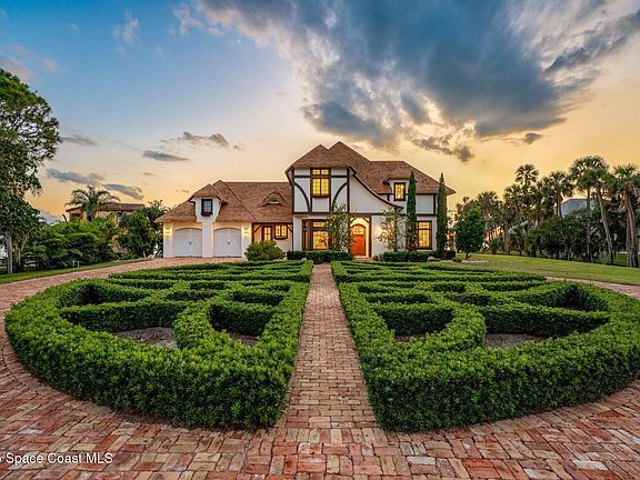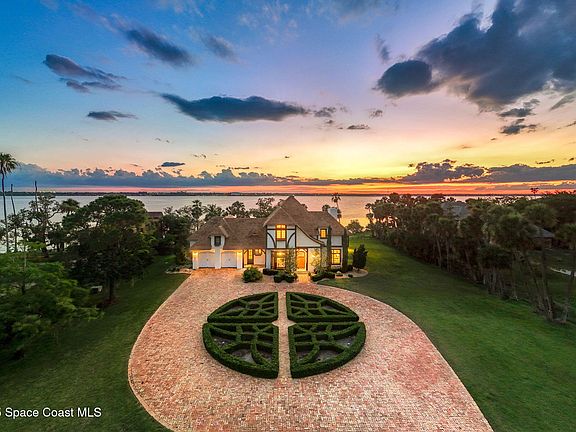 If one were to cross a classic English country estate with the tropical paradise of an island on Florida's Space Coast, the outstanding result would be 7021 S. Tropical Trail. Grandeur, serenity, and exclusivity are the feelings that come to mind as you drive through the private gates of this magnificent 5-acre waterfront estate, surrounded by not one, but two navigable rivers on Brevard's most desired Tropical Trail.