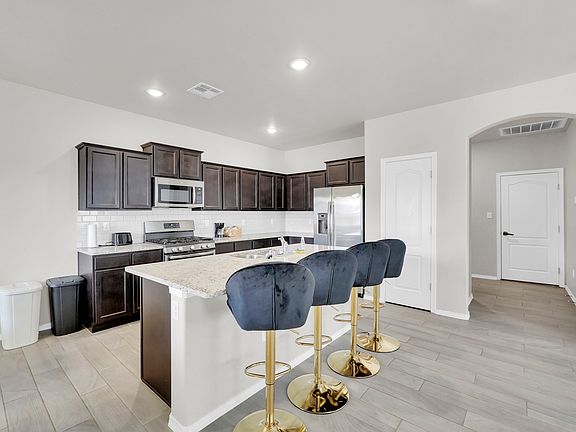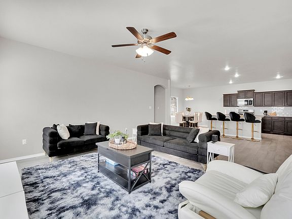 This beautifully maintained 3-bedroom, 2-bathroom home offers comfort, style, and convenience in a quiet, family-oriented neighborhood. The spacious open-concept living area features recessed lighting and ceiling fans throughout, creating a bright and welcoming atmosphere. The kitchen is equipped with a large center island, granite countertops, stainless steel appliances, and a classic subway tile backsplash perfect for cooking and entertaining. The primary bedroom includes a generous walk-in closet and an ensuite bathroom with a large walk-in shower. Outside, the fully enclosed backyard features an upgraded rock wall, a covered patio ideal for relaxing or entertaining, and a low-maintenance drip irrigation system in both the front and back yards. Additional highlights include smooth hand-textured walls and a dedicated laundry room. Conveniently located just minutes from schools, parks, and shopping, this home is a rare find in a desirable area.
