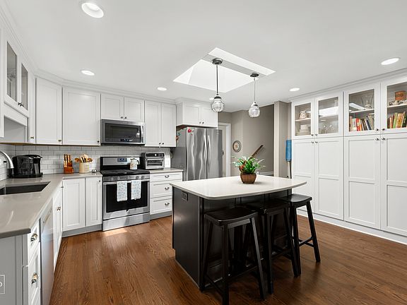 - Features: Kitchen (Eating Area-Breakfast Bar, Island, Custom Cabinetry, SolidSurfaceCounter, Updated Kitchen), Flooring (Hardwood), Window Treatments (Skylight(s))