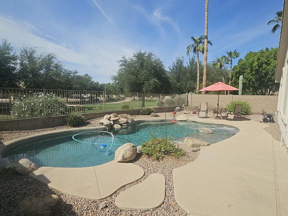 Your Sierra Verde Dream Home Awaits! This single-story, 3-bedroom, 2-bath with den/office. Enjoy the park side setting with no rear neighbors! The home features an inviting cozy front porch, bright vaulted ceilings, and a large master suite with a walk-in closet. Your backyard retreat includes a sparkling heated pool and decorative patio, all with low-maintenance landscaping. The home also boasts a 3-car garage! You'll love the community lake and parks within walking distance. Located just off the 101, you're minutes from Arrowhead Mall, dining, and the Peoria Sports Complex.