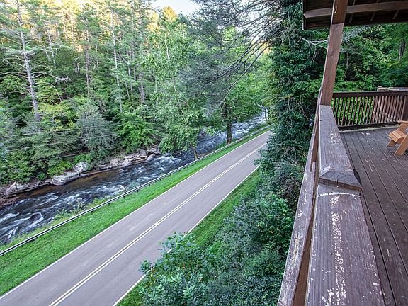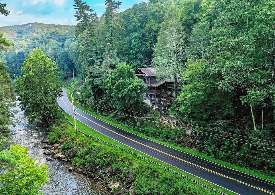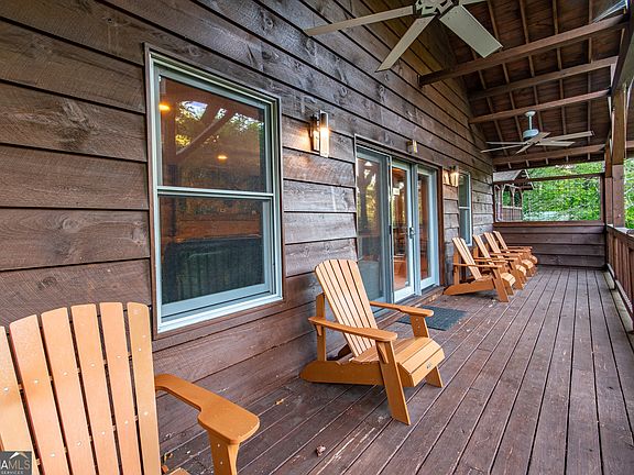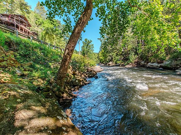 Experience one of the most distinctive riverfront homes in the North Georgia Mountains. Sitting along the roaring Toccoa River in the heart of the Aska Adventure Area, this one-of-a-kind 3BR / 5BA cabin comes fully furnished, spans 3,076 sf, and sleeps up to 14 guests. Built in 1987 and meticulously maintained, it blends rustic Appalachian charm with modern comforts, making it ideal as a family retreat or a proven short-term rental investment. The home offers two en-suite bedrooms with king-size beds and balconies overlooking the river, plus a guesthouse suite with a king bed, balcony, kitchen, bath, and a two-person hot tub. A honeymoon suite includes another balcony and a jacuzzi with spectacular river views. To maximize accommodations, the home also features four private loft-style “caves” with low ceilings, each accessed by a short flight of stairs and cooled and heated with an HVAC vent. These cozy, unique spaces include three queen beds and one twin each, making them a favorite for families and groups. There are multiple living areas, a large kitchen and dining room with seating for 14, plus a kitchenette in one suite. Outside, expansive decks showcase the sights and sounds of the rushing Toccoa, while a five-person hot tub and outdoor gathering areas create the perfect backdrop for relaxation and memory-making. For outdoor enthusiasts, the property offers direct unrestricted river access for fishing just across the street. From parking lots 1 and 2, you can walk down the driveway to Stanley Rapids, a historic public site where you can kayak, tube, fish, sunbathe, or capture unforgettable photos. All of this comes with the benefit of a prime location, located just minutes from downtown Blue Ridge, the Toccoa Riverside Restaurant, and miles of scenic hiking trails. Whether you're looking for a full-time residence, a luxury mountain getaway, or a turn-key rental with excellent income potential, this property is a rare riverfront gem that truly has it all.