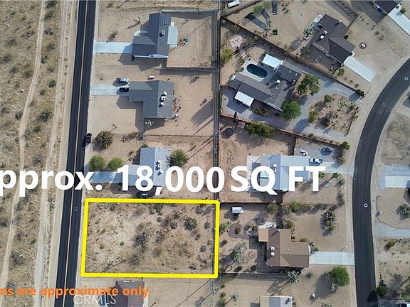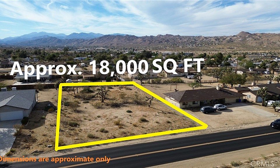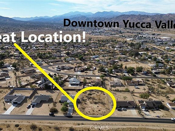 Gorgeous flat lot with stunning distant mountain views in established neighborhood. Approx. 18,000 SQ FT of beautiful land with big beautiful custom homes in $500K to $700K range throughout the neighborhood. All utilities (water,sewer,electric,gas,phone,internet,cable) at or near the street. Located conveniently near downtown Yucca Yalley shopping, dinning and entertainment. Popular Joshua Tree National Park hiking and rock climbing activities are also just a few minutes away! SELLER MAY CARRY/FINANCE WITH REASONABLE DOWNPAYMENT! Don't miss out on this great opportunity...make your offer today!