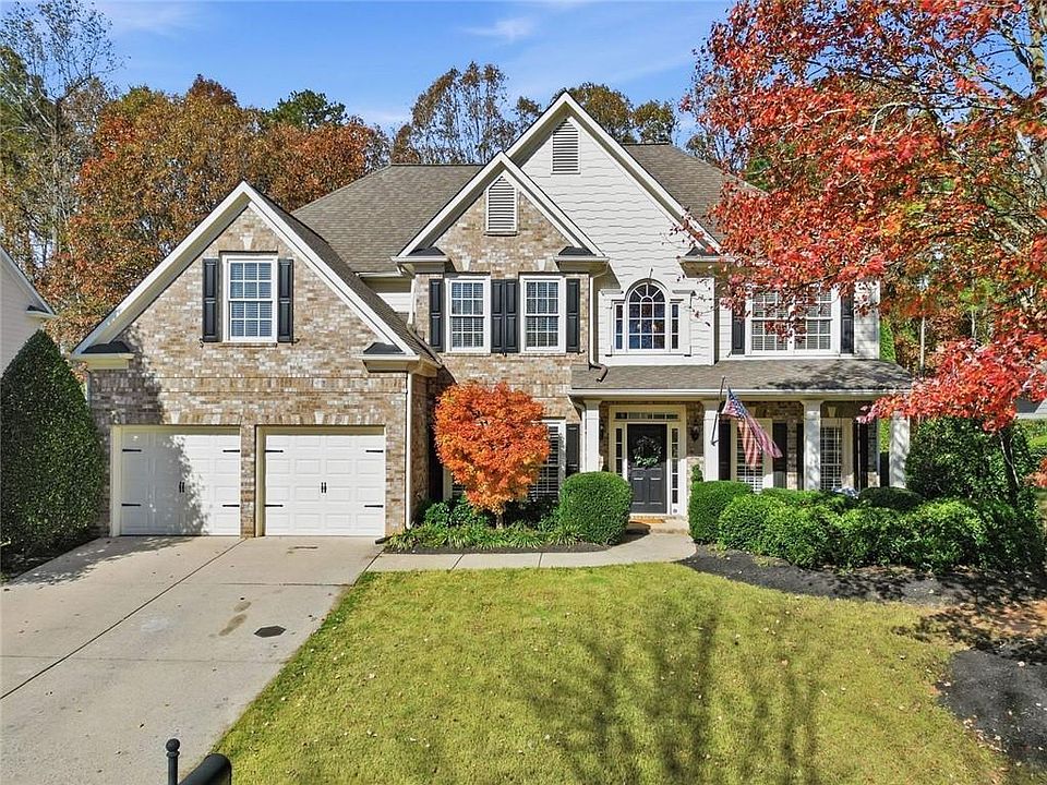 Welcome to this elegant and beautifully updated 4-bedroom, 2.5-bathroom home perfectly situated across from the 4th hole in the highly sought-after Windermere community. The home features wonderful curb appeal with a warm, inviting front porch, a fenced backyard, a screened-in porch, and a stunning flagstone patio—ideal for relaxing or entertaining. Inside, the newly updated kitchen showcases brand-new appliances including a refrigerator and gas stove, along with a gorgeous new island, modern range hood, updated countertops, and a stylish backsplash. The kitchen opens to a huge two-story family room with a cozy fireplace, and the main level also includes a formal dining room, a separate living room, and a versatile office/playroom/multipurpose room. A split-landing staircase provides convenient access from both the front entry and the kitchen. Upstairs, the enormous primary suite offers a spacious sitting area, while the redesigned laundry room with a mudroom off the two-car garage adds everyday convenience. All bathrooms have been beautifully updated, LVP flooring spans the main level, and new chandeliers and light fixtures enhance the home throughout. Truly move-in ready, this home is waiting for its new owner. Windermere offers excellent schools and resort-style amenities including a clubhouse, swimming pools, tennis courts, golf, a fitness center, pickleball, basketball, sidewalks, streetlights, parks, and playgrounds. This home enjoys a picturesque setting, and the Bennington section also features its own playground, parking area, and tennis courts.