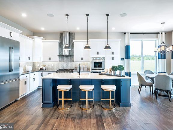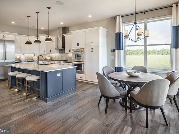 EXCLUSIVE OFFER - BLENHEIM MODEL HOME FOR SALE! FIRST FLOOR LIVING in the area's luxury 55+ community! This exquisite model home showcases designer upgrades and finishes in every room! The welcoming entry and foyer opens into the spacious dining room, great room, and kitchen in open-concept style. The well-designed kitchen overlooks a bright casual dining area and is equipped with a large center island with breakfast bar, plenty of counter and cabinet space, and ample pantry.  A few of the quality finishes include: hardwood flooring throughout the entire home, Thermador appliances, quartz countertops, many carpentry built-ins, and stylish light fixtures. The lovely primary bedroom suite is highlighted by a tray ceiling with crossed beams, huge dual closets, and spa-like primary bath with dual-sink vanity, luxe glass-enclosed shower with seat, and linen storage. The secondary bedroom features a roomy closet and shared full hall bath. Additional highlights include a versatile office off the foyer with built in window seat and shelving,  centrally located laundry with appliances, and additional storage over the 2-car garage. The finished basement is a must see! Large wet bar, built-in shelving, spacious recreation room and full bathroom. Topping off this amazing home is a fabulous outdoor living space! Enjoy a built-in grill, fire-pit, and paver patio area overlooking a private yard and the community pond. Walk to your new, private, community clubhouse with 5,700 square feet of indoor recreation space plus an outdoor swimming pool, bocce ball courts, pickleball courts, putting green, and more! Enjoy a low-maintenance lifestyle that includes lawn care, landscaping, trash and snow removal. This home is truly a one-of-a-kind!