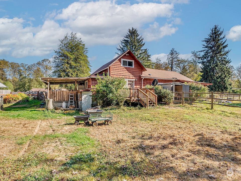 Scenic and serine 18 acre property down a quiet country road. Lovely stream runs through the property that has pastures, outbuildings, and is fenced. Enjoy hiking and nature in your slice of paradise. Currently a duplex with two electrical meters and income potential. There is an existing culvert and trail to a space for a building lot with a view of Mt. Pilchuck. Feels very secluded with so much potential.
