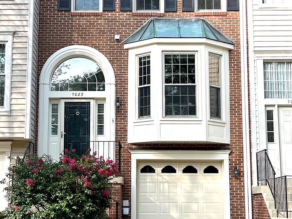 Welcome to 7023 Ashleigh Manor Ct, a wonderful brick-front Ballston model ideally located on a tranquil court with no through traffic, backing to trees in Alexandria’s popular Kingstowne community. The home boasts 2,002 sq ft with 3 bedrooms, 2 full baths, 2 half baths, and a 1-car garage. Enjoy excellent curb appeal with thoughtful landscaping designed to bloom from early spring to late fall. The exterior was recently upgraded with low maintenance in mind, featuring vinyl-capped trim, updated gutters, a spacious Trex deck, and an attractive lower rear patio. The garage door (and entire system) were also recently replaced, adding to the home's effortless appeal. Inside, a fresh, neutral paint palette creates an inviting atmosphere. The modern foyer with updated flooring and pendant lighting sets the tone, while oak hardwoods extend from the entry stairs throughout the main level. The spacious, open kitchen features stainless appliances, recessed lights, and ample counter/cabinet space, complemented by a light-filled eat-in breakfast bay window. Enjoy entertaining in the spacious dining room which opens to a large living room featuring soaring 2-story ceilings, a newer premium gas fireplace (with remote!) and two half-moon windows that fill the room with light year-round. A recently installed set of French doors leads from the living room to the spacious, newer Trex deck, backed by trees and green space for ultimate privacy. Below, a newer, modern lower patio offers another fantastic space for outdoor entertaining and relaxation. The large master bedroom is uniquely situated on its own floor and accessed by a set of French doors, providing a private retreat with a vaulted ceiling, tons of natural light and a walk-in closet. The spacious master bath features a soaking tub, double vanity, and a recently upgraded energy-efficient skylight. Two additional good-sized bedrooms and a full bath are on their own upper floor, with the stairway illuminated by an updated skylight as well. The spacious basement features modern LED recessed lighting, a half bath, and a recently replaced sliding glass door that opens onto the lower patio and open green space behind the home. With a full-sized washer and dryer in the basement and an extra storage room in the one-car garage, this home truly has it all. Kingstowne offers an extensive array of amenities, including two outdoor swimming pools, two fitness centers, a splash pad, multiple sports courts for tennis, basketball, pickleball, sand volleyball, numerous tot lots, incredible playgrounds, two community centers and 12 miles of picturesque walking trails. It’s also close to two Metro stops, two town centers, 7 different grocery stores and all commuter routes!