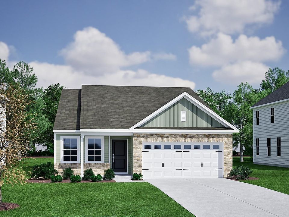 **ESTIMATED COMPLETION IS MARCH** Welcome to the Howard—a beautifully designed single-story home offering 1,433 square feet of comfortable, modern living. Featuring three bedrooms, two bathrooms, and nine-foot ceilings throughout, this thoughtfully crafted floor plan blends style, function, and warmth. Step through the front door and down the hall into the open-concept main living area, where the modern kitchen flows seamlessly into the dining and great rooms—the perfect space for cooking, gathering, and relaxing. The spacious primary suite, tucked privately at the back of the home, offers a peaceful retreat complete with a large walk-in closet featuring a convenient laundry pass-through, as well as a well-appointed bathroom with a water closet and linen storage. Two additional bedrooms provide flexibility for family, guests, or a home office — one located just off the garage entry near a full bath, and another at the front of the home for added privacy. Stone accents add timeless curb appeal and character to the exterior. The Howard combines modern comfort with everyday practicality, creating a warm and welcoming place to call home.