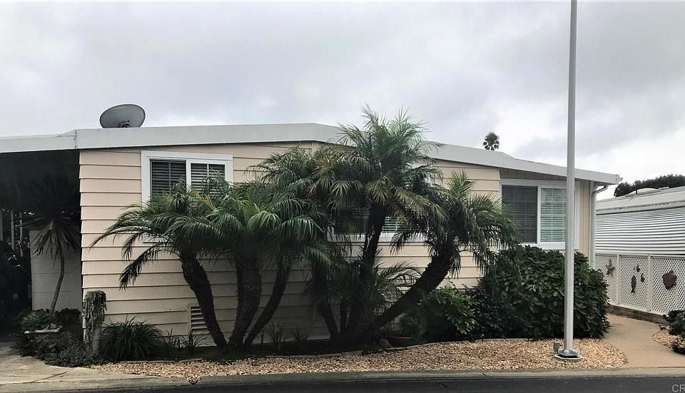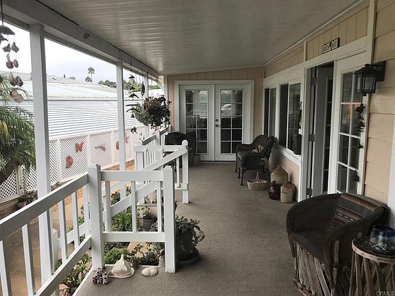 BEST LOCATION EVER! A MUST SEE! Very desirable park West of I-5 and 1-1/2 Blocks to the beach. Lake Shore Gardens is a 55+ luxury manufactured home community located in South Carlsbad. COASTAL LIVING AT ITS BEST! AMAZING SUNSET VIEWS! Home is situated on the only lot in the park that has a GREEN BELT AS YOUR NEIGHBOR! which wraps around the space next to home and continues around front of property. Property is on the largest & most beautiful Lake in the park with gorgeous views from interior of home from every room and from a huge porch adding 326 sq.ft. of additional outdoor living space. Home also features an office off living room. Very spacious 1,662 sq.ft. of living space. This partially remodeled home has a spacious floorplan with a master suite that was originally 2 bedrooms that's now an oversized master suite. Bedrooms could be considered dual masters. Each bedroom is at opposite ends of home. Special features include: Dual pane windows, 3 sets of French doors leading you to the front porch, ceiling fans in all rooms, laminate flooring, master bath remodeled, new central air conditioning unit. Community is gated and gate is closed 24/7. No HOA or Property Taxes.