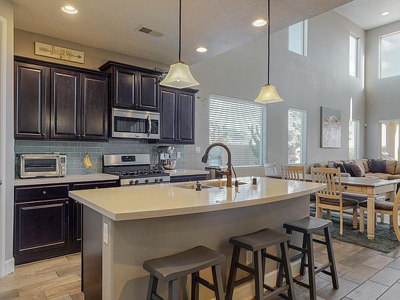 This gorgeous former DR Horton Model features all the upgrades & amenities that models offer! Large corner lot with mountain views! Backyard has all the extras for outdoor gatherings--stacked stone fireplace, built-in gas grill, paver stone patio PLUS high quality Hot-tub! This 4 bedroom home includes upstairs 2nd living area (16.9x18.11), main-level office, 4 baths, 3 car garage! Main-level Master Suite with bay window, en-suite bath, walk-in closet. Spacious Kitchen features staggered cabinets, silestone counters, glass tile back-splash, gas stove, center-prep island, stainless fridge stays, pantry. Plank-style tile floors, 9 ft. interior doors, iron stair-rail, recirculating tankless water heater, water softener plus water filtration in kitchen. See walk-thru Virtual Tour!