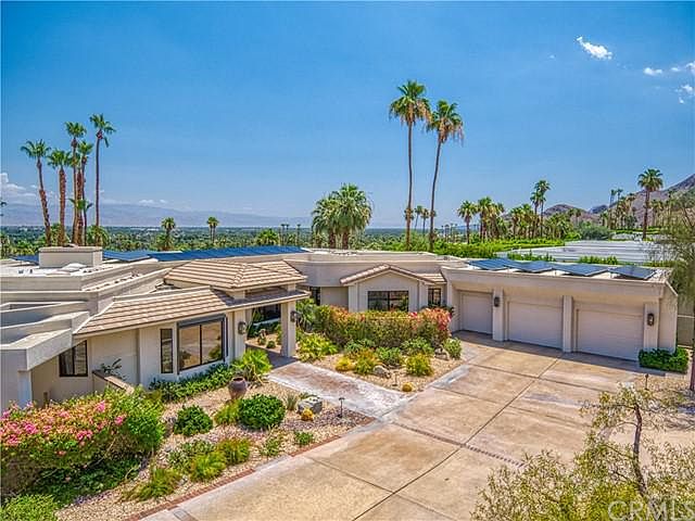 Spectacular Panoramic vistas overlooking the Valley and Mountains await you in the exclusive gated community of Thunderbird Heights. This spacious home is situated on a half acre corner lot with approximately 4100 Sq Ft of living space. Formal living and formal dining rooms, plus family room adjacent to the updated kitchen. Incredible Mountain and Valley views are enjoyed from every area of the home. The large master bedroom has a sitting room with walls of windows to enjoy the views plus 2 separate bath rooms, 2 walk in closets and lots of built-ins. 3 guest rooms ( 2 on-suite) each with walk in closets, (one currently used as an office.) The formal living room has step down wet bar with gorgeous Marble counters and dramatic fireplace plus separate formal dining room with very dramatic lighting and built-in marble buffets. The updated large kitchen has a walk in pantry and island and is open to the family room. There is a 2 car plus golf cart garage that is equipped with and electric car charger and 2 electric hydraulic lifts enabling the garage to store up to 4 cars. The circular driveway is perfect for your guest parking while entertaining. Enjoy outdoor living with covered patio areas, beautiful elevated mountain and valley views, built-in BBQ, built in heaters, 2019 remodeled pool and separate spa. A Huge 21.58KW Paid-For Solar system was added in 2018. This spectacular opportunity will not last. Hurry on this one!
