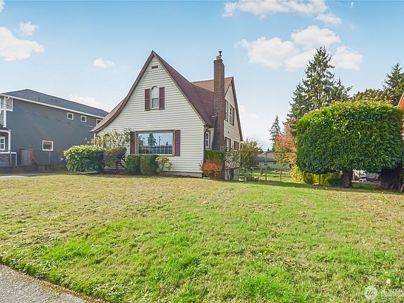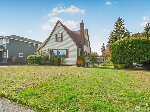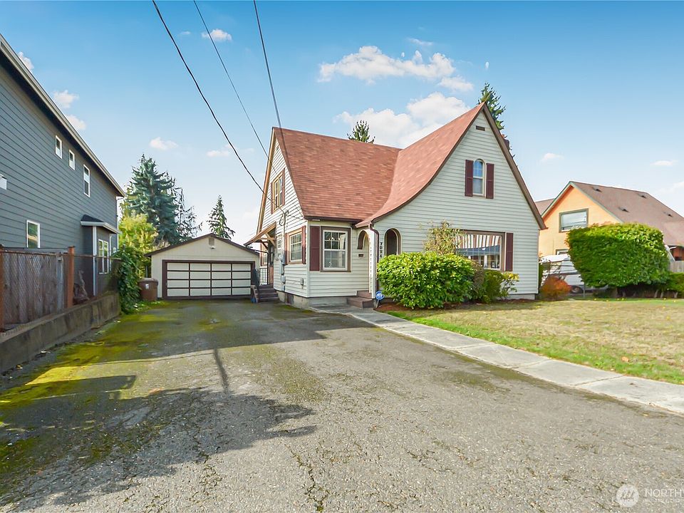 Ideally located 1929 Tudor home in South Tacoma boasting 1,692 square feet of living space. Primary bedroom and full bath on main floor and three additional bedrooms and half bath on 2nd level. Original hardwood floors blend timeless character. The partially finished basement boasts 192 square feet of finished living space, with a pellet/ wood burning fireplace providing an entertainment atmosphere. Detached 2-car garage. Huge, fenced backyard with fruit trees and plenty of space for gardening. New roof on garage. Heat Pump / AC. Close to schools, shopping, dining, coffee shops and quick access to I-5. Here is an opportunity to create a legacy! Key box located on side door.