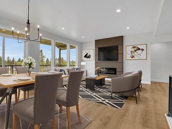 NEW 2025 DAYLIGHT RANCHER | BETWEEN DOWNTOWN & THE VALLEY Wake to sun-splashed hillside views, hike Dishman Hills five minutes away, then be at Costco, Sacred Heart or Spokane Int’l Airport in under 10/15. This 3440 sq ft home delivers true main-level living plus untapped equity below. The great room soars with vaulted ceiling, wall of windows, elec fireplace and deck overlooking a 1.5-acre greenbelt—no rear neighbors! A chef-ready kitchen pairs miles of shaker cabinetry with an oversized pantry, tile splash and quartz island made for gatherings. Retreat to the luxe primary suite: tiled shower, double vanity and California closets. Two bright guest rooms and a full bath complete the main. The walk-out lower level is framed & plumbed for two more bdrms, bath and media/game lounge—perfect for multigenerational living or future rental income. 2-car garage includes a heated 11×11 workshop/salon. Stone accents, sprinklers, high-speed internet, gas heat + A/C and more. Finish the basement and watch your value soar.