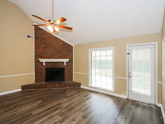 Come explore this stunning three-bedroom, two-bathroom rental home in Memphis. Your tour begins in the living room, which features vinyl plank flooring, an overhead fan, and an impressive brick, floor-to-ceiling fireplace to keep you warm. In the modern eat-in kitchen, you'll find granite countertops, stainless steel appliances, and all-white cabinetry that brightens the space. The master bedroom includes a huge walk-in closet and an en suite bathroom. Spend your afternoons outdoors on the patio in the secluded backyard. Call today to schedule your tour of this charming single-story home.