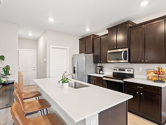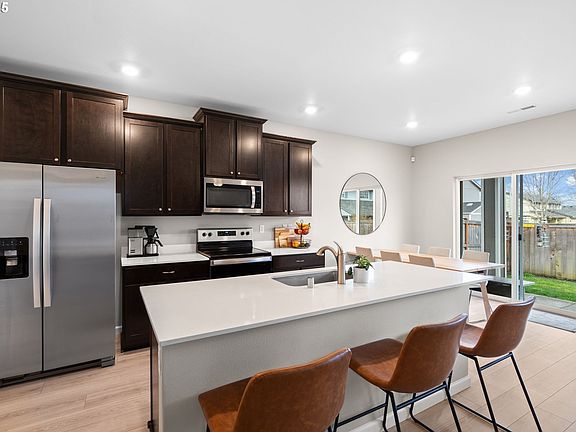 Welcome home to this stylish 4 bedroom, 2.5 bathroom gem that perfectly balances comfort & modern design. The open concept great room is filled with natural light & flows seamlessly into the spacious dining area with sunrise views, which leads to the extended covered patio & fully fenced yard, perfect for indoor & outdoor living. The upgraded kitchen is a chef’s delight with quartz countertops, large island, pantry, stainless steel appliances & fridge. Upstairs, the expansive primary suite offers a peaceful retreat with a generous bedroom, an oversized walk-in closet, double sinks & a spa-like ensuite bath. Three additional bedrooms & a versatile loft provide plenty of space for work, play, or relaxation. With stylish finishes & a layout designed for both entertaining & everyday living, this home is one you don’t want to miss!