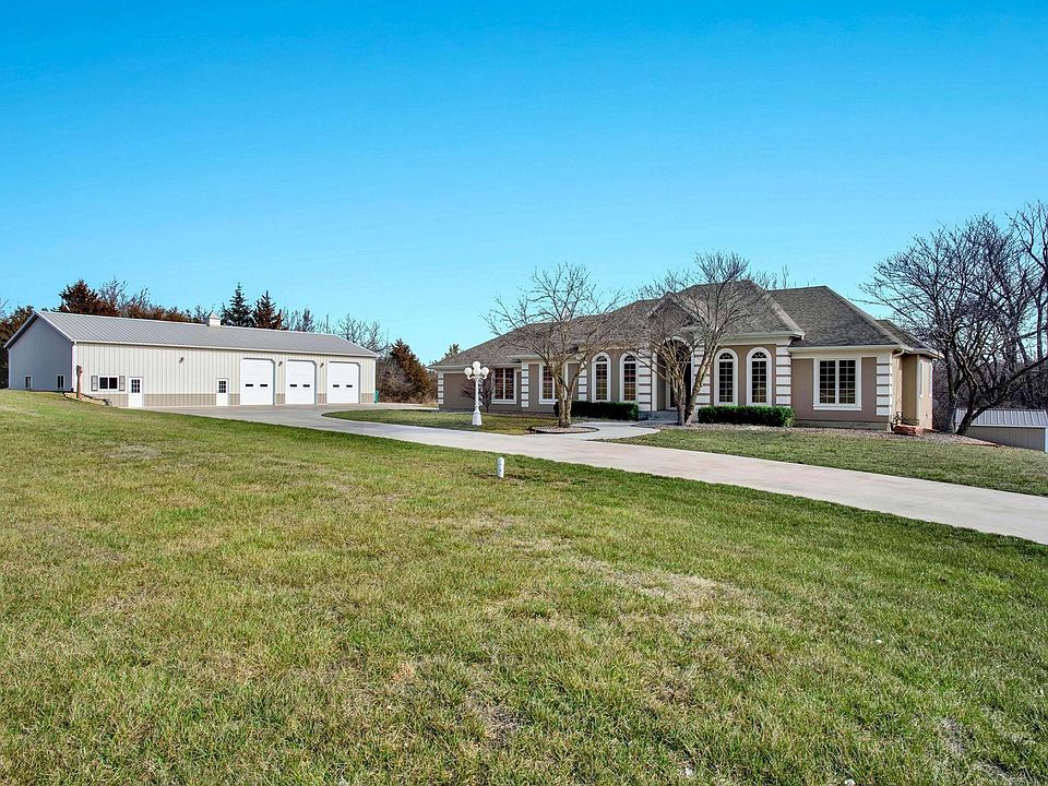 Your own private oasis on the southwest side of Topeka awaits! Beautiful estate on almost 3 acres with one of the best settings around including an inground saltwater pool and a massive 80 x 40 outbuilding with concrete floors electrical and plumbing. Very spacious bedrooms to go with over 2500 square feet on your main floor! Newly remodeled kitchen with high end appliances, large island, walk in pantry, wine fridge and more. Schedule your showings now before its too late!
