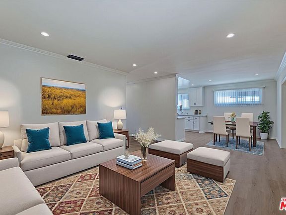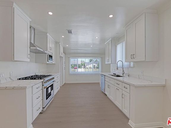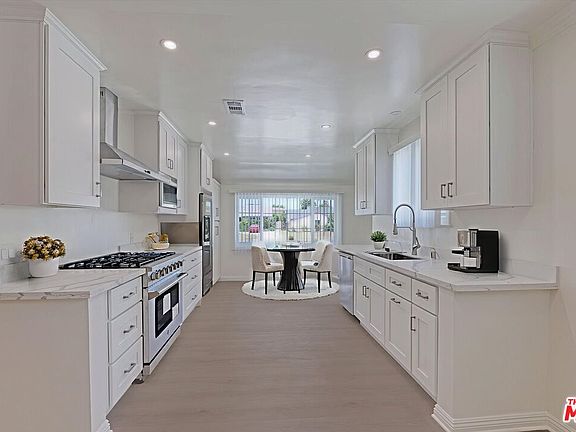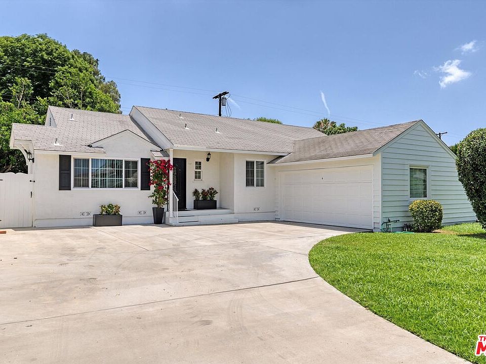 Major price improvement! Welcome to your dream home! This beautifully remodeled 3 Bedroom, 1 3/4 Bath Ranch style gem is flooded with natural light. New energy efficient windows may reduce costs while providing a bright airy feel. You'll love the open floor plan with light neutral laminate flooring that flows throughout the entire home. Spacious remodeled kitchen features new stainless steel appliances including a 6 burner range with convection oven. Additional kitchen features are sleek quartz counters, new soft close cabinetry with pull out shelves for spices and cleaning supplies, built in microwave, large pantry, broom closet, and ample space for a breakfast table. Living room and dining area boast elegant crown moldings and recessed lighting. Stylish renovated main bath has dual sinks, quartz counter, and a large lighted mirror. The Primary bedroom includes a private en-suite updated bath, ceiling fan, and chic mirrored closet doors. For added comfort, both other bedrooms feature ceiling fans as well. Laundry is a breeze with a stack washer/dryer conveniently located off the bedrooms. The generous sized family room is perfect for gatherings. Step through sliding doors to an outdoor oasis. The backyard is beautifully landscaped and complete with fruit trees. A canopy of mature trees creates an inviting space for relaxing or entertaining. Other features include central air and heat, tankless water heater, copper plumbing, new 200 amp electrical panel, and an attached 2 car garage. Nestled in a great pocket where Colbath is not a though street and has minimal traffic. Don't miss this turnkey home that combines contemporary upgrades with timeless charm.