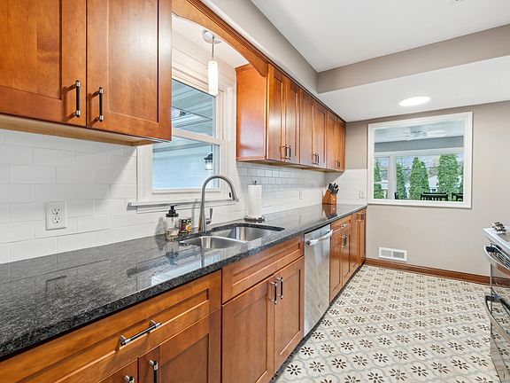 A rare find in the area- Completely updated and beautiful 4-bed/2 bath rambler with 3- bedrooms on one level! The exterior boasts cement board siding, vinyl windows, architectural shingles, gutters, and oversized 2-car attached garage. The kitchen features birch cabinets, granite counter tops, and stainless steel appliances including a double oven! Gorgeous sunroom with gas fireplace has great views of the large backyard which has a 6' wood fence that offers privacy. Outdoor living space on your concrete patio perfect for BBQ! The main level has hardwood floors in the 3 bedrooms and living room which also features a gas fireplace with stone surround. The bath has been completely renovated with tile floors, subway tile shower, and vanity. The basement was just finished in 2022 and offers a large family room with walk-up bar, a bedroom with an egress window, and a beautiful bathroom with ceramic tile floors & shower. All the utilities in the home have been updated: 2019 water heater, 2020 furnace, 2019 all the iron & copper plumbing pipes were replaced and updated to PVC & PEX. This is a must-see home, it is amazing inside and out!