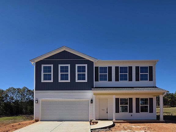 READY IN NOVEMBER! This home will impress you from the moment you see its modern white vinyl exterior with blue accents. You can easily envision yourself sitting on the large front porch. Upon entering, you will find a spacious family room that is perfect for entertaining family and friends. The upgraded kitchen features stainless steel gas appliances, shaker-style white cabinetry, and granite countertops. At the back of the home, there is a versatile flex room that can serve as a home office or playroom. The windows allow for great natural light and offer glimpses of the wooded backyard, which is over half an acre. Upstairs, there is plenty of space to spread out, with a spacious loft ideal for movie nights and three secondary bedrooms that provide ample storage. The primary suite is equally impressive, boasting plenty of closet space, quartz countertops with dual sinks, and a five-foot shower. Come see this wonderful home today in Fairview Falls!