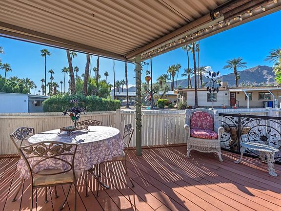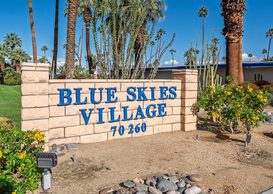 You own the land! HOA only $360 a month. Pool, clubhouse and more.Blue Skies is a gated 55+ gated community of manufactured homes. This property has 2 bedrooms and one bath with inside laundry. The open living and dining and kitchen area have lots of windows to look out to the mountains and plenty of cabinet space for all your personal items. Large outdoor area with covered patio, garden, and then another patio for more privacy. There's a newer AC. HOA dues include cable TV, internet, water and trash pick up. Sold furnished.