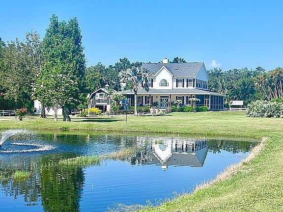 Price Reduced!! COUNTRY LIVING WITH SUBURB CONVENIENCES? Starbucks just 7 min. away! This gated and fenced 8+ acres hosts a 2-story custom built home with 3 bedrooms, den/office, bonus room wired for surround sound, 2 full and 1 half baths; 5,051 sf under roof with 10 ft-wide wrap-around porch - 3/4th screened for outside comfortable living. The home features an open concept floor plan with a "chef's kitchen": two 4-burner Jenn-air ranges, microwave, very large custom granite island, 2 sinks, large double ovens, walk-in pantry. Additional features include a wood burning fireplace, skylights, high ceilings, new porcelain tile floors, two new air conditioning units, new hot water tank and Reverse Osmosis Water System. The acreage includes irrigation, well water, a 1400 sf barn converted to guest house or mother-in-law suite a 2 car garage, a 3 stall horse stable, finished tack room with water, electricity and air conditioner (a second office or craft room?), and fenced paddocks with extra fencing. If you're not into horses use it to store your jet skis, mower, etc. The back 6 acres are wooded including Spanish moss covered 1000 yr oaks and walking/riding trails for enjoying nature. Only a 45 minute drive to Tampa International or 30 minutes to SRQ, 17 miles to Anna Maria Island and 5 minutes to the brand new Elementary, Charter and High Schools. Space to breathe and ranch style living. Who could ask for anything more?