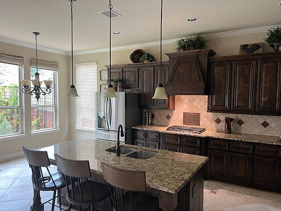 Beautiful Mediterranean home in upscale, gated community, located close to Fiesta Texas, Rim, USAA, UTSA and medical center. Home features attractive landscape, private backyard, walk-in closets, media room, game room, tankless water heater, sprinkler system, walk-in pantry, stainless steel appliances, gas stove, knotty alder cabinets, waffle ceilings, ceiling fans in all the bedrooms, primary bedroom and second primary on first floor, five bedrooms and five bathrooms, water softener, garage storage, hardwood floors, custom paint and accent walls, second sink in butler's pantry, and much more. No smoking and no pets. Available for rent in October.