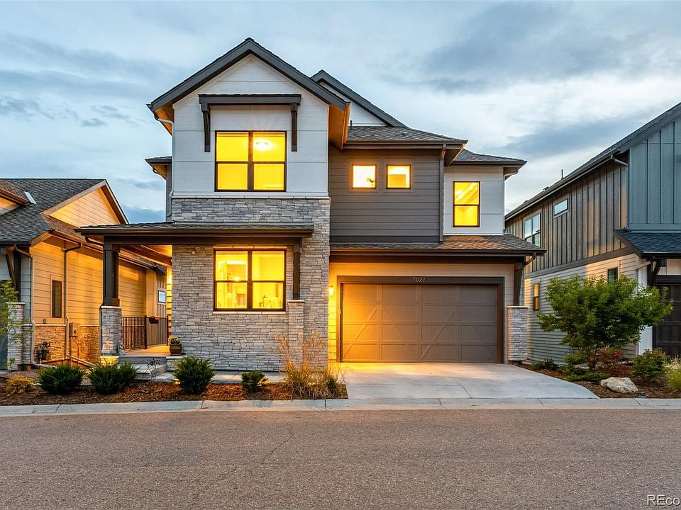 Your dream home is finally within reach! This beautiful 4-bedroom residence welcomes you with a 2-car garage and an eye-catching stone facade for excellent curb appeal. The foyer leads you to a captivating great room with high ceilings, recessed lighting, a soothing palette, wood flooring, and an inviting fireplace. The impeccable kitchen comes with quartz counters, 42" white shaker cabinets with crown moulding, chic pendant lighting, a striking tile backsplash, stainless steel appliances, a pantry, and an island with a breakfast bar for casual meals. You'll also find a main-level bedroom with an ensuite and a walk-in closet. The well-appointed office provides a dedicated space for productivity. Upstairs, you'll find a sizeable loft ideal for an entertainment room or lounge. The luxurious primary suite boasts soft carpeting, an attached bathroom with double sinks, a lavish soaking tub, and a large walk-in closet. You'll be delighted by the spacious family room, featuring a secondary fireplace and a wet bar for intimate moments. Enjoy majestic sunsets on the lovely balcony, perfect for a sip of your favorite drink. Unwind at the end of a long day in the backyard, complete with a covered patio and lush natural turf. This gem will sell fast! Act now before it's gone!