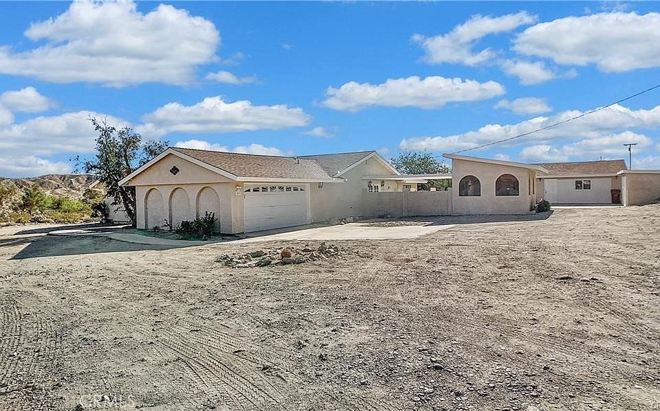 Looking for a large custom turnkey 4 Bedroom 3 Bathroom home in 29 Palms with a guest house? You just found it! Truly a unique home with tons of upgrades and unique architectural features. New dual pane windows recently installed throughout home. Walk into the formal living room with high ceilings, custom windows and a stone fireplace. There is a large formal dining room with open kitchen area, as well as a custom family room with open beam plank ceilings. The main home that features wood laminate flooring, and new paint throughout. The kitchen has been upgraded with white cabinets, and gray Quartz counter tops, as well as newer stainless steel appliances. The master bedroom is right off the kitchen and separated from the other 3 bedrooms. There is a private courtyard area with a spa house, as well as a large covered patio area with expansive views. You also have a really nice guest house that has 2 separate living spaces, and its own full bathroom, and a small kitchen area (no appliances). Attached 2 car garage and a well built storage unit. You can see the fireworks from Tortoise Rock Casino on the 4th of July!