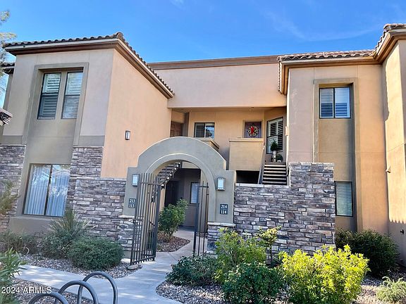 This gorgeous 2 bed/2 bath condo is now available for that special buyer who appreciates the opportunity to purchase a FULLY FURNISHED, Master of the Southwest designer-curated PV jewel across from the Ritz Carlton. The Traviata community is tucked away behind the Seville marketplace, but this unit is quite private; its cozy, walled patio faces a quiet common area at the edge of the community, but is just a short walk to the pool & a wide variety of great restaurants, shops & fitness choices in Scottsdale.