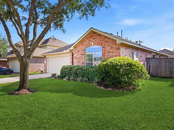 Located in the highly acclaimed Klein ISD, this well maintained one-story home offers comfort, space, and abundant natural light. It features 3 generously sized bedrooms, each with its own walk-in closet, providing ample storage. A formal dining room is perfect for hosting, while the spacious living room is filled with windows that create a warm and inviting atmosphere. The breakfast area also boasts multiple windows, making it the perfect spot to enjoy morning coffee while overlooking the outdoors. The primary suite is a true retreat, complete with a bathroom featuring double sinks; walk-in shower; and relaxing garden tub. Beautiful landscaping surrounds the home, complemented by a sprinkler system in for the front and backyard. Enjoy outdoor living on the covered patio with pull-down shades or follow the flagstone pathway to a peaceful sitting area ideal for relaxing/entertaining. This home seamlessly blends functionality, natural beauty, and outdoor living in a desirable location.