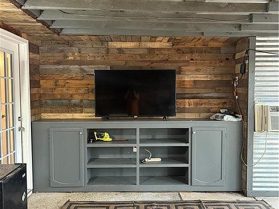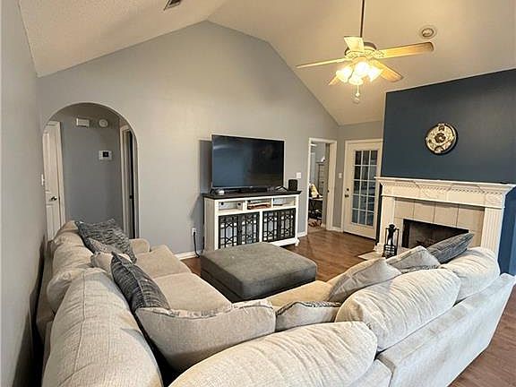 Freshly painted walls to baseboards, and HVAC is approximately 1 year old! This inviting home offers an open floor plan with vaulted ceilings in the living room, a cozy fireplace, and French doors that lead to a covered patio accented with warm wood walls.