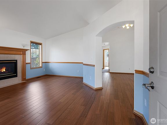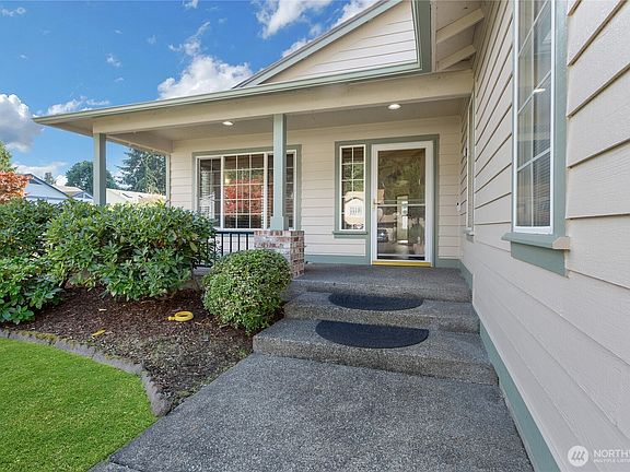 Updated and inviting Rambler in the Gated community of Elm Tree Park! 3 bedrooms, 2 baths, 2 car garage. New Roof and skylight 2025! New exterior paint 2025. Nicely designed open floor plan. Kitchen updated in 2017, counters, appliances, cabinets refaced, floors. Vaulted ceilings, skylights, island, walk-in pantry. Doors to backyard and garage. Gas fireplace in living room. Primary Bedroom with walk-in closet, sliding barn door & ensuite. In 2021 Added Heat Pump/AC & new gas furnace. Corner lot. Huge fenced back yard with large patio, gazebo, storage shed, mature landscaping and raised garden area. New back entry deck with handrails. Extra off-street parking. Neighborhood Park. Near shopping, Frederickson, Boeing, JBLM military bases.