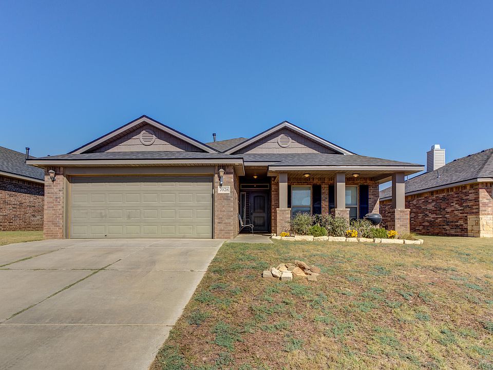 Nestled in a quiet, modern neighborhood, this charming single-family residence at 7028 97th St offers stylish living in the heart of Lubbock. Built in 2015, the home spans approximately 1,672 sq ft and features 3 bedrooms and 2 full baths—making it ideal for first-time buyers, downsizers, or small families. Step inside to find a warm and inviting open-floor plan where the living room flows seamlessly into the dining area and kitchen. The living room is anchored by a cozy fireplace that adds character and comfort to the space. The kitchen is efficiently laid out with modern appliances, ample cabinet space, and a breakfast bar—perfect for casual meals for entertaining guests. Primary Bedroom has ample room and offers two walk-in closets. Outside offers a generous yard for outdoor living, gardening, or al fresco dining. A two-car attached garage provides convenient parking and storage. Don't miss this opportunity to own a stylish and well-kept home. Schedule your viewing today!