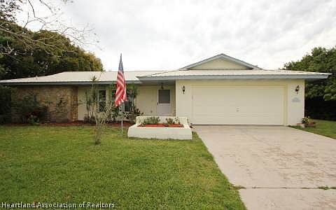 Well maintained home in Spring Lake on 1/2 acre lot. Tiled throughout with faux wood floors in kitchen and breakfast area. All new windows and glass sliders. Metal Roof in 2005. Enter into a large living room/dining room combination with sliders to screened porch. Galley kitchen, tiled backsplash. Adjoining breakfast area. Also,pass through window to porch with counter. Spacious guest bathroom and bedrooms. Family room has sliders to porch to expand living area. Large screened porch overlooks nicely landscaped backyard and patio. Master bedroom with bay window. Master bathroom space includes walk in closet, toilet and shower space, new vanity and dressing area. Big in house laundry room. Spring Lake is a golf community located close to downtown Sebring.