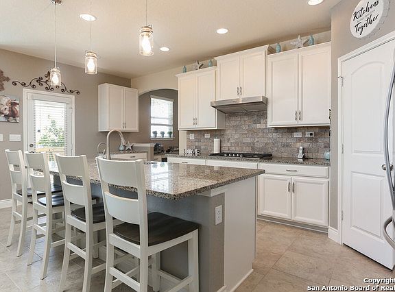 Beautiful 4 bedroom home located in the sought after Homestead Neighborhood and perfectly situated in the heart of Schertz. Secondary bedroom or office and full bath on the 1st floor. The open floor plan makes it fantastic for entertainment as the kitchen with kitchen island, stainless steal appliances, gas cooktop, rustic stone back splash, plenty of cabinets and counter space overlooks the living room. The small nook right next to the kitchen makes it a cute area to prepare your early morning coffee. Lots of windows on the first floor allow for loads of natural light to enter the home. Unwind in the spa like master bathroom with double vanity, shower and tub. Relax in the spacious backyard with the covered patio. Easy access to I35, restaurants, shopping and highly rated schools in the Schertz-Cibolo district.