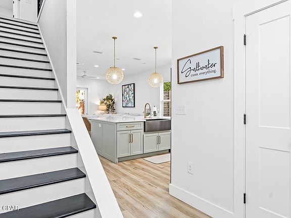 A premier investment and luxury coastal retreat, this custom beach home is positioned just a short 5-minute walk from Public Beach Access 15 and the iconic emerald waters of Panama City Beach. Purposefully designed to host large groups, it sleeps up to 19 guests and delivers impressive rental projections exceeding $130,000 annually. The open main level showcases a gourmet kitchen with granite countertops, stainless steel appliances, and walk-in pantry flowing seamlessly to the covered patio, private pool, and outdoor shower. The primary suite provides resort-style comfort with a soaking tub, walk-in shower, and spacious closet, while multiple bunk rooms including a third-floor bunk suite with lounge area enhance rental versatility. A second-floor family room with a wet bar opens to a sunset-view sundeck ideal for entertaining. Perfectly located on the desirable East End near local favorites like Schooners and FINNS Barista Bar & Snack Shack, this fully furnished property offers superior guest appeal and proven performance in one of PCB's strongest rental corridors.