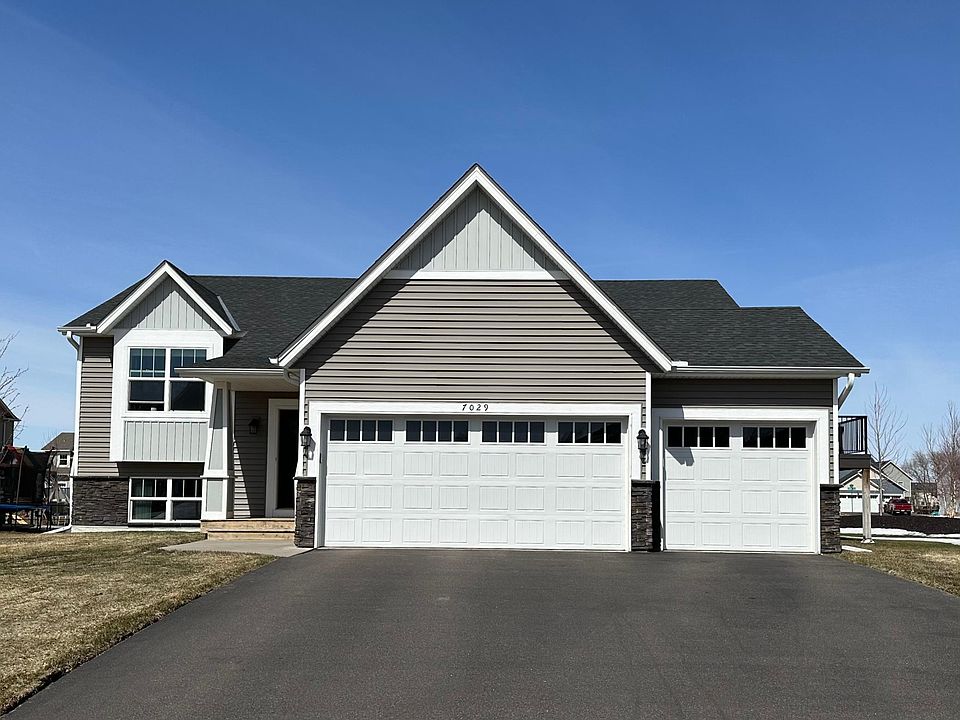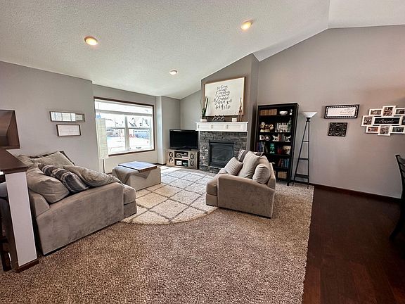 This beautiful home is like-new and move-in ready! Fantastic open feel throughout main floor with vaulted ceilings and an abundance of natural light. Loaded with upgrades including a stone gas fireplace in the living room, an oversized center island with granite top, quartz countertops, Stainless appliances, and a walk-in pantry in the kitchen and the spacious dining room features beautiful wood floors and walks out to a large maintenance free deck. Three bedrooms on one level. Large primary bedroom with private 3/4 bath, walk in closet and a walk out to private deck! Lower level is unfinished and ready for your ideas & finishes. Outside you will love the large corner lot with inground sprinklers, a privacy berm and 15 extra trees sellers have added! Fantastic location in a very quiet neighborhood w/terrific neighbors. Close to new Brookside Elementary School, walking trails, multiple parks, shopping, dining and more, Welcome home!