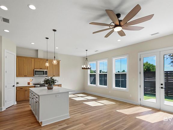 Experience the perfect blend of luxury, comfort, and coastal charm in this beautifully crafted custom home, perfectly tucked away on a private cul de sac just minutes from the sugar white sands of Gulf Shores. From the moment you step inside, the open design and elegant details invite you to unwind and breathe in the coastal serenity. The chef inspired kitchen shines with quartz countertops, stainless steel appliances, a gas cooktop, and soft close custom cabinetry, all illuminated by modern designer lighting.Throughout the home, LVP flooring, tiled showers, and custom doors and finishes flow seamlessly, creating an atmosphere of refined comfort. With two spacious bedroom suites, one conveniently located on the first floor and another on the second, each offers a peaceful retreat designed for rest and rejuvenation. The main suite features a custom walk in closet and a soaking or jetted tub perfect for melting the day away.Every corner of this home has been thoughtfully designed, from the wide driveway and spray foam insulation to the tankless water heater and double pane hurricane impact windows, ensuring unmatched energy efficiency and year round peace of mind.Built to FORTIFIED Gold standards, this home offers exceptional protection and long term value, blending strength and beauty for the ultimate coastal lifestyle. Conveniently located just one and a half miles from the new Gulf Shores High School and close to shopping, dining, and the Coastal Connection, you are perfectly positioned to enjoy everything this thriving community has to offer.This is not just a home, it is your everyday escape to paradise where modern sophistication meets the tranquil spirit of Gulf Coast living. Buyer to verify all information during due diligence.