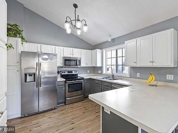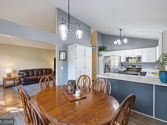 Welcome to 703 11th Street in prime Farmington location. Great open floor plan with sunlit spaces and vaulted ceilings. Kitchen has stainless steel appliances and loads of cabinets. Informal dining room has plenty of space for entertaining family and friends. Patio door leads to a large deck overlooking fenced-in back yard and neighborhood park. Nice sized master bedroom with walk-in closet. Junior bedroom and full bath complete this level. Lower level has large family room with a cozy fireplace and custom built-ins, great space for entertaining family and friends. There is a barn door entrance to lower level bedroom with a entrance to another room accessed thru the bedroom which could be used as a office. flex room or bedroom. The lower level has full bathroom. Great family home with easy access to shopping, schools and parks. This home will sell fast so don’t wait!! VA Assumable w/qual