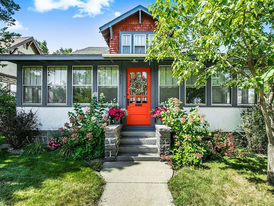Charming 5 bedroom, 4 bath home on a desirable corner lot with a detached 2-stall garage. This home radiates curb appeal and timeless character, showcasing original woodwork, real hardwood floors, leaded glass built-ins, and a cozy gas fireplace framed by stunning craftsmanship. The formal dining room features a built-in buffet and striking ceiling detail, while the sun-filled enclosed porch is perfect for relaxing.