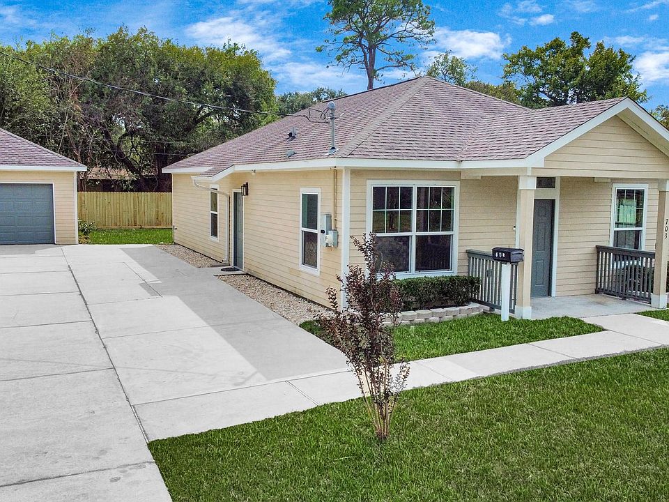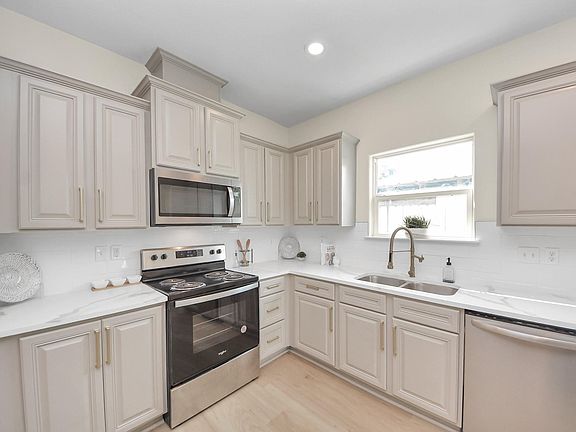 Indulge in this beautifully renovated, energy-efficient 2013 build home, showcasing modern comfort and elegant design. Featuring a brand-new HVAC system, Low-E double-pane windows, blown-in insulation, 9ft-ceilings, PEX piping, recessed lighting, a spacious walk-in laundry room, and an oversized driveway. The kitchen offers custom-style cabinetry with gold hardware, Calcutta Gold quartz countertops, and brand-new stainless-steel appliances. Throughout the home, enjoy waterproof luxury vinyl plank flooring that blends durability with style. Unwind in the serene primary suite featuring a spa-inspired bathroom with LED-lit niches and a generous walk-in closet. This property has never flooded and is ready for immediate move-in.