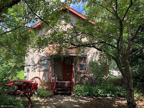 4 bedroom 1.5 bath home hidden in the trees for privacy. Hardwood floors and a full basement that has a laundry area, storage areas and a workshop bench. Gardens of flowers, grapes, berries, lilac bushes and more. A great location and walking distance to the school. Open area in the back yard for the kids to play. Two garages and tar parking area.