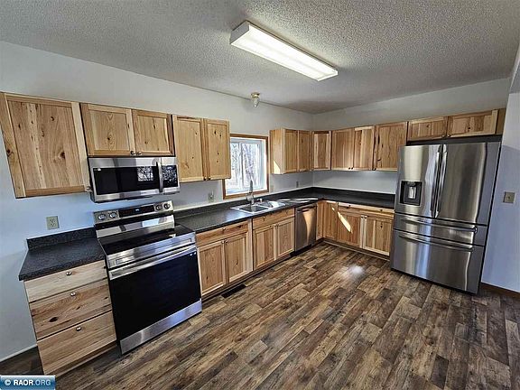 Beautifully updated and spacious move-in ready home on a large corner lot! 4 bedrooms / 1 bathroom / 2 stall garage / Natural gas forced air heat / Open floor plan / Stainless steel kitchen appliances / Large upper bedrooms / Primary bedroom with walk-in closet / Poured concrete basement / Vinyl siding. An excellent home!