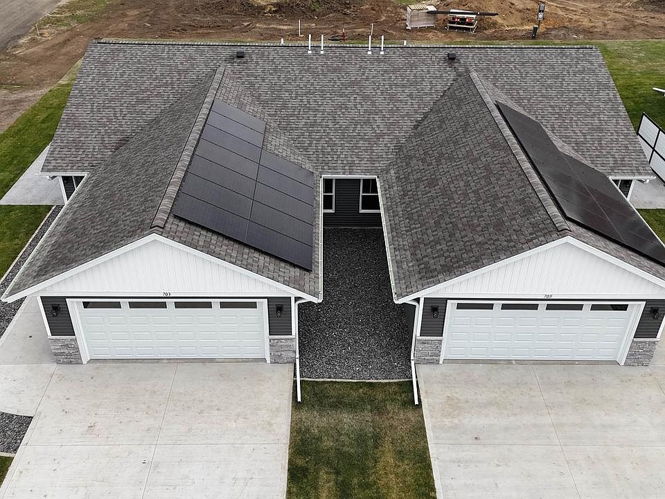 Welcome to your next home, investment property? This beautifully built brand-new twin home offers 3 spacious bedrooms, 2 full baths and an attached 2 car garage. Perfect for comfortable living and convenient storage. With 1386 square feet of well-designed living space, you'll enjoy an open layout, quality finishes, and low maintenance living. Each unit comes with a professionally installed solar energy system. Designed to significantly reduce or even eliminate electrical bills.